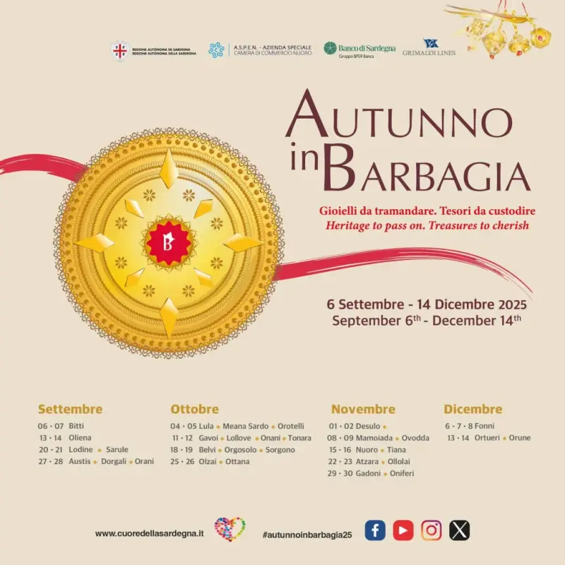 Dal 6 settembre al 14 dicembre 2025, la Sardegna si accende di colori, sapori e tradizioni con Autunno in Barbagia, uno degli eventi più attesi dell’anno.